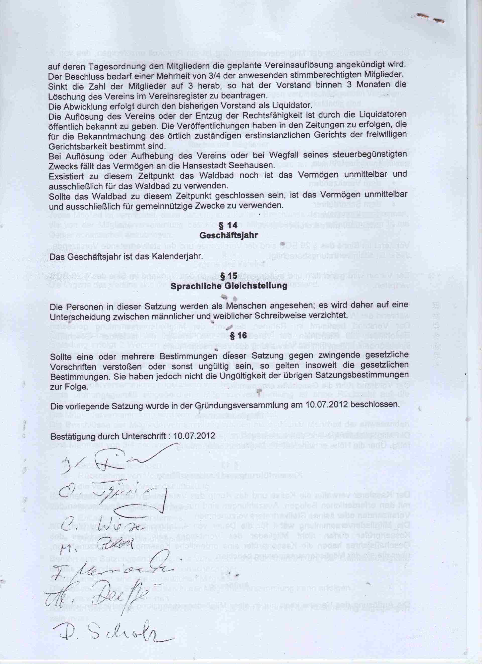 Der Verein führt den Namen Förderverein „Waldbad„ der Hansestadt Seehausen nach erfolgter Eintragung in das Vereinsregister mit dem Zusatz "eingetragener Verein" Förderverein „Waldbad“ der Hansestadt Seehausen e.V.
